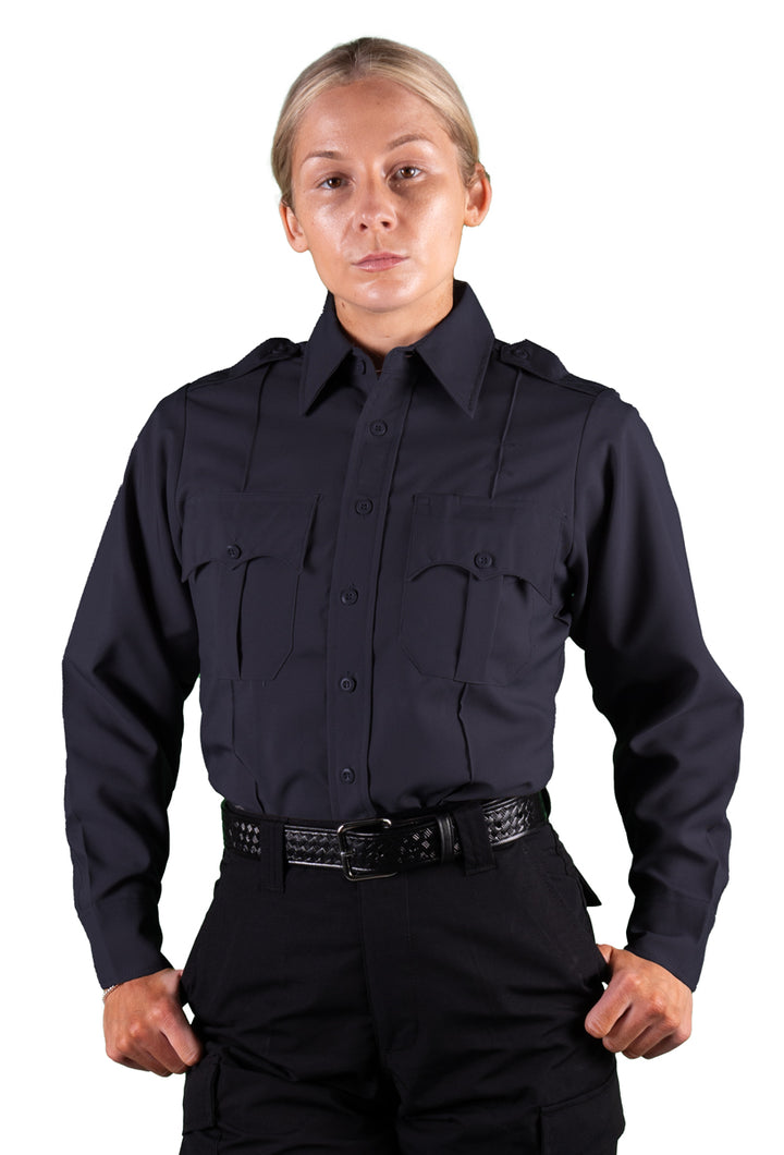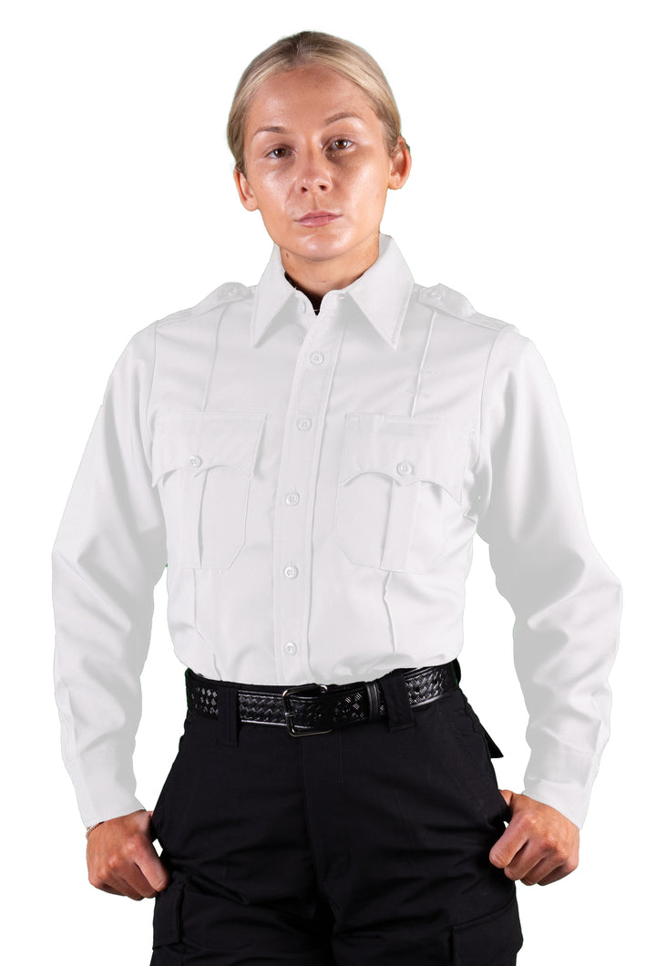 Womens 100% Polyester 4 Pocket Hidden Zipper Uniform Shirt - Long Sleeve
